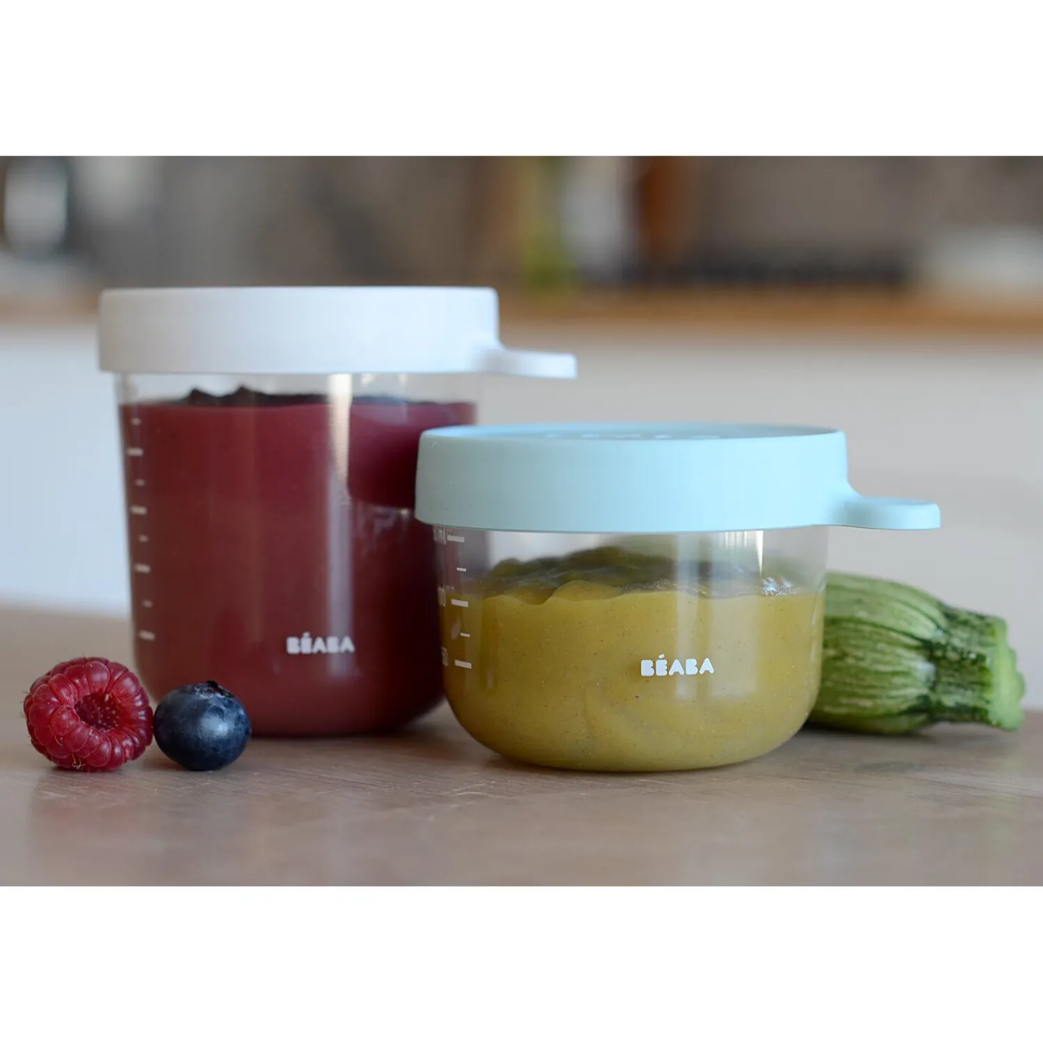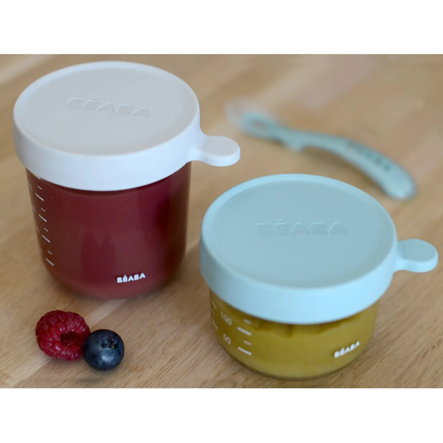 BÉABA Lot 2 portions verre 150 et 250ml Vert clair/Gris clair< Pots De Conservation