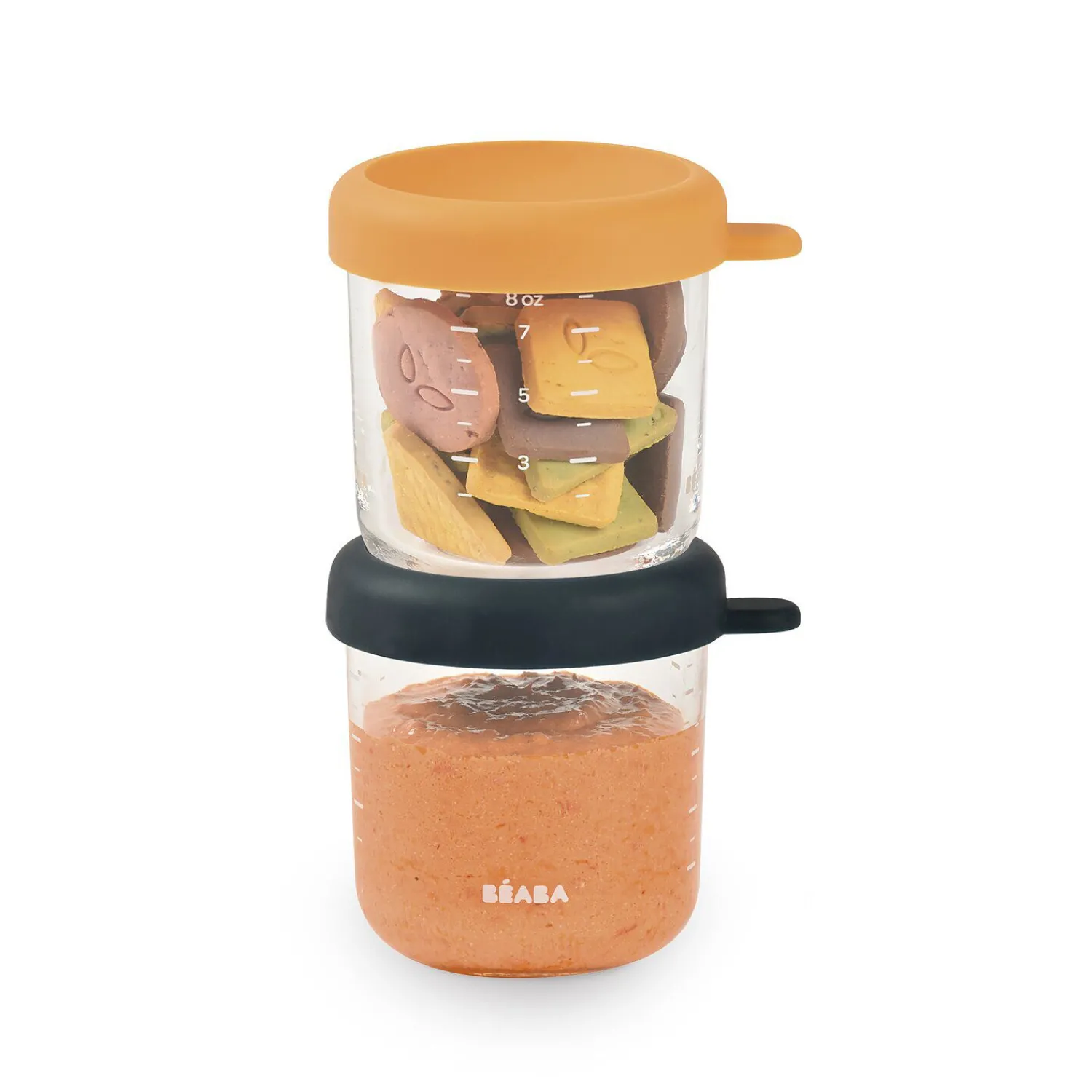 Les portions verre Béaba® de 250 ml en coffret de 2 sont idéales pour conserver, réchauffer et congeler les purées et compotes maison de vos tout-petits.